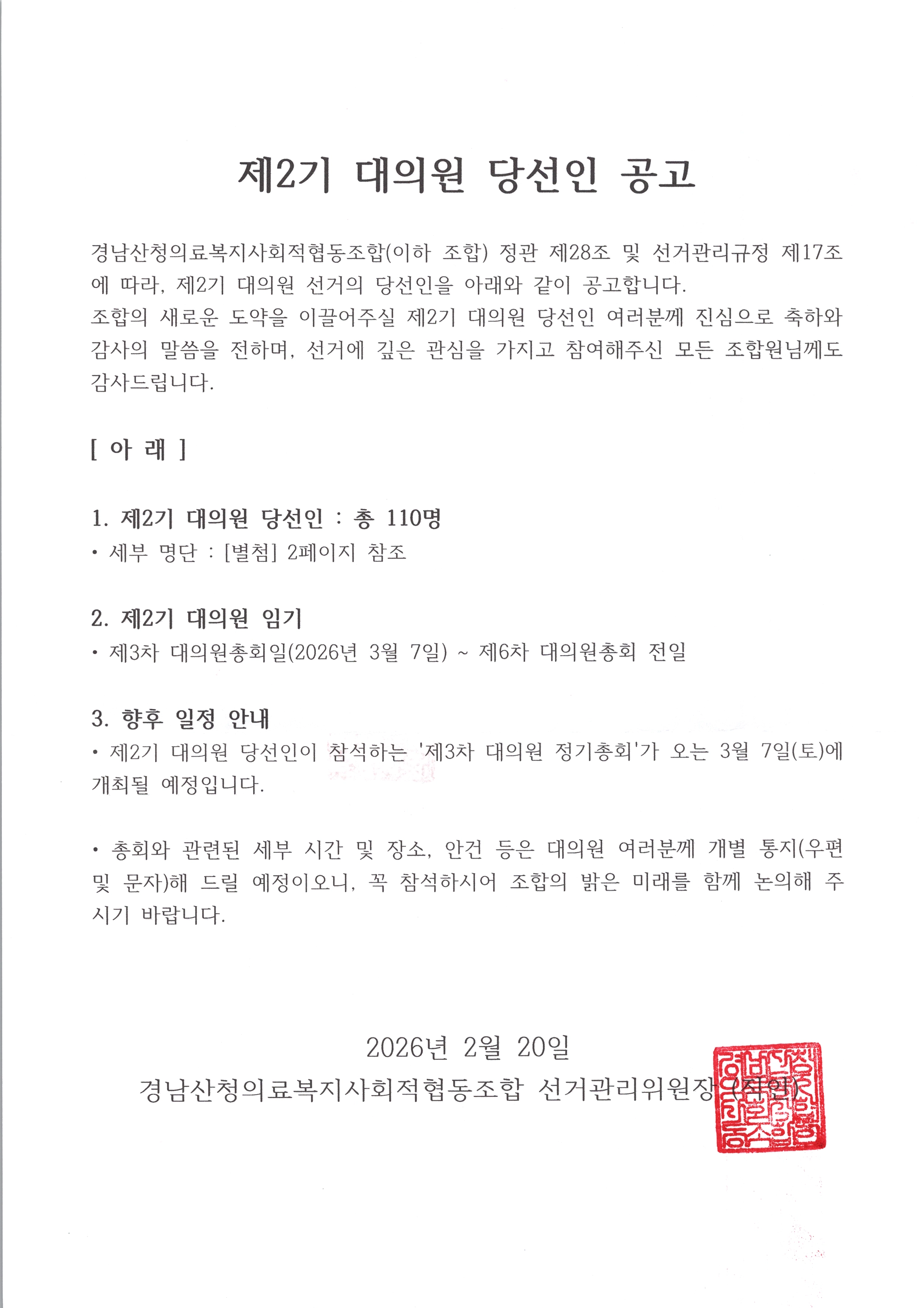 2기 대의원 선거 공고